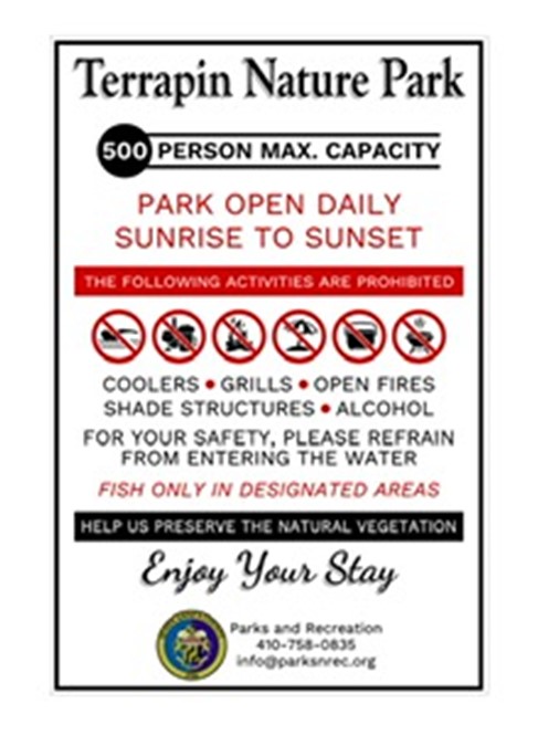 Terrapin Nature Park and a portion of the Cross Island Trail will be closed on Monday, October 18 until November 3, 2021. This closure is necessary for the construction of the new ranger station and restrooms. We appreciate your patience while we work to update the facilities. For more information, please contact the Parks and Recreation Department at (410)758-0835